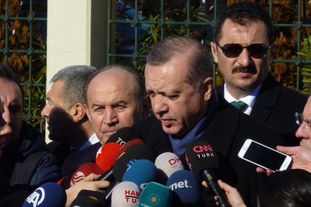 Cumhurbaşkanı Recep Tayyip Erdoğan, Cuma namazını Kısıklı’daki Hazreti Ali Camii’nde kıldı. Cuma namazı çıkışı basın mensuplarının sorularını cevaplayan Cumhurbaşkanı Erdoğan, TBMM’de görüşülen anayasa değişikliği görüşmelerinde yaşanan kavgayla ilgili değerlendirmelerde bulunarak, "Öncelikle 8 madde bu gece itibariyle parlamentoda müzakerelerde demokratik olmayan yaklaşımlarla olsa da geçti. Gönlümüz kürsü adabına uygun bir şekilde herkesin demokratik hakkını en güzel şekilde kürsüde kullanması, oradan düşüncelerini, partilerinin düşüncelerini ifadelerini orada ortaya koymalarıydı. Başından itibaren ne yazıkki böyle olmadı. 8 madde öyle ya da böyle geçti. Bundan sonra temenni ederiz ki çok daha sakin bir havada ve demokrasinin adabına uygun bir şekilde devam etsin. Bir milletvekilinin burnunun kırılması, bir milletvekilinin afedersiniz ayağının dişlenmesi gibi çirkin durumların olması hiçbir milletvekiline yakışır bir şey değil. Böyle şeyleri arzu etmezdik. Ne yazık ki öyle ya da böyle bu işin biteceğine inanıyorum. Bu hafta içinde biter, işin asıl sahibine gidecek millete gidecek. Millet bunun asıl sahibi. Millet bunun asıl kararını verecek. Bu telaş niye öyleyse kürsüyü kırmak katiplerin çevresindeki çiçekleri atmak. Eninde sonunda buradaki arkadaşlar milletin vekilleri. Asıl değil neyi bekliyorlar. Milletimiz 330 aşılırsa bize gelsin diyor. Milletimiz ’Bu işin gerçek sahibi benim’ diyor. Meydanlarda yeni bir anaya sözü verilmişti" dedi.