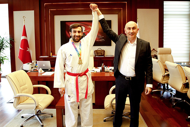 Rektör Prof. Dr. Tamer Yılmaz, Üniversitelerarası Karate Şampiyonasında, Türkiye birincisi olan Abdülsamet Küçükoğlu’nu makamında ağırladı. Başarıyı her zaman desteklediklerini dile getiren ve Yılmaz, Küçükoğlu’na teşekkür belgesi takdim ederek günün anısına hatıra fotoğrafı çektirdi.