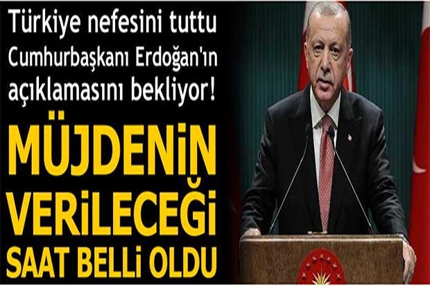 Cumhurbaşkanı Erdoğan dün yaptığı açıklamada, "Cuma günü inşallah bu müjdeyi tüm milletimize vermek suretiyle Türkiye'de yeni bir dönemin açılacağına da şimdiden inanıyorum" demişti. Erdoğan'ın açıklamayı yarın saat 15.00'da yapacağı belirtildi.