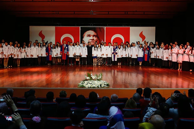 “Bu önlüğü giyerken sakın ‘ben bu önlükle zengin olacağım’ demeyin. Mümkün olduğu kadar gücü olmayandan parayı almayın. Onu da Allah için yapın. Çünkü oradan almadığınız her lira başka yerden fazlasıyla size gelir. Bunu yapacağınıza inanıyorum. Hastayı anneniz, babanız, kardeşiniz olarak görün. Öğrencilerimizi ve onları yetiştiren ailelerini tebrik ediyorum.”