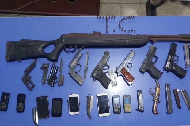 Gaziantep'in Nizip ilçesinde yakalanan ve uyuşturucu ticareti suçundan tutuklanan şahsın evinde yapılan aramada, 1 havalı tüfek, 1 tabanca. 3 kuru sıkı tabanca 5adet çakı olarak bilinen bıçak ele geçirildi.