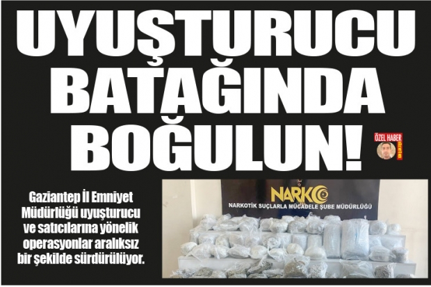 Gaziantep İl Emniyet Müdürlüğüne bağlı Narkotik Suçlarla Mücadele Şube Müdürlüğü ekipleri kentte uyuşturucu satışına geçit vermiyor. Polis ekipleri uyuşturucu kullanımı ve satışına yönelik düzenlediği operasyonlarda zehir tacirlerine göz açtırmıyor. Diğer yandan Gaziantep'te vatandaşlar uyuşturucu satışı gerçekleştirilen kişilere yönelik olarak, "Uyuşturucu batağında boğulun" diyerek tepki gösteriyor.