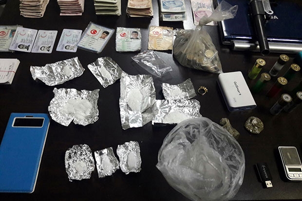Edinilen bilgiye göre, Gaziantep Güven Polis Merkez Amirliği ekipleri, Şehitkamil ilçesi Çıksorut Mahallesi'nde ihbar üzerine bir eve baskın düzenledi. Uyuşturucu ticareti yaptığı belirlenen 9 kişi gözaltına alan ekipler, evde yaptığı aramada ise 150 gram metafetamin, 20 bin lira, 2 adet hassas terazi, 2 adet tabanca, çok sayıda cep telefonu ve tablet bilgisayar ele geçirdi.