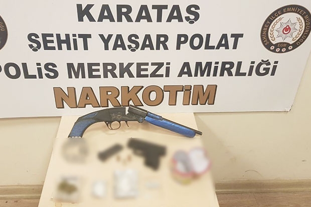 Şahinbey İlçe Emniyet Müdürlüğü ekipleri, Güneykent Mahallesi'nde bir ikamette S.G. isimli şahısın uyuşturucu madde sattığı bilgisinin alınması üzerine ikameti takibe aldı. Takip sırasında ikamete girip çıkan 3 şahsın ekiplerce yapılan üst aramasında 0,65 gram metamfetamin maddesi bulundu. Ekipler, belirlenen adrese yaptığı operasyonda ise iki ayrı fişek halinde toplamda 3.70 gram metamfetamin, 4.60 gram esrar, 1 adet kurusıkıdan çevirme ruhsatsız tabanca ve 2 adet 7.65 fişek ile 1 adet tek kırma kısa dipçik ruhsatsız tüfek ve 25 adet fişek ele geçirdi.