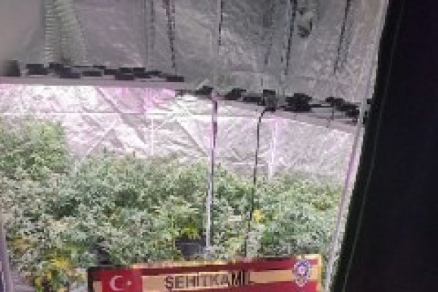 Gaziantep Emniyet Müdürlüğü'ne bağlı Şehitkamil İlçe Emniyet Müdürlüğü ekipleri, Emek Mahallesi'ndeki bir ikamete uyuşturucu operasyonu düzenledi. Yapılan operasyonda, ikametteki bir odanın içerisine uyuşturucu yetiştirmek için özel dizayn edilmiş 2 adet aliminyum çadır tespit edildi. Çadırlarda yapılan aramalarda 65 kök güçlendirilmiş esrar maddesi ve çadırların yanında ise kurumaya bırakılmış 2 kilogram esrar ile uyuşturucu madde üretiminde kullanılan gübre ele geçirildi.
