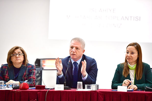 İslahiye Belediyesi Kültür Merkezi’nde gerçekleştirilen toplantıda muhtarları dinleyen Vali Gül, ”İhtiyaç ve talepleri yerinde öğrenmek, çözüm gerektiren konularda kurum idarecilerimiz ve mahalle muhtarlarımızı bir araya getirmek amacıyla buradayız. Sizlerden gelen talep ve sorunların çözüme kavuşturulması doğrultusunda takip edileceğini belirterek katılımlarınızdan dolayı teşekkür ederim" dedi.