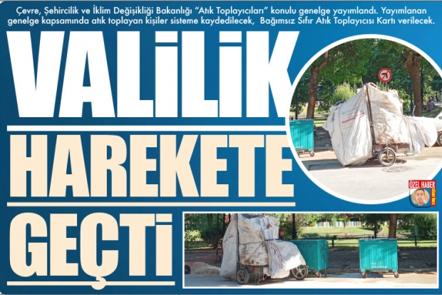 Çevre, Şehircilik ve İklim Değişikliği Bakanlığı "Atık Toplayıcıları" konulu genelge yayımlandı. Bakanı Murat Kurum imzalı genelgeye göre, atık toplayıcılığı faaliyeti yürüten 18 yaş ve üzerindekiler, faaliyet gösterdikleri yerin belediyesine, TC kimlik numarası ve iletişim bilgileriyle başvuruda bulunabilecek. Belediyeler bu bilgileri, il veya ilçe emniyet müdürlüklerine ve jandarma komutanlıklarına bildirecek. Uygun bulunanlar, ilgili belediyelere iletilecek. Belediyeler tarafından başvuru süreci tamamlanan atık toplayıcısı, Sıfır Atık Bilgi Sistemi'ne kaydedilecek ve "Bağımsız Sıfır Atık Toplayıcısı Kartı" sahibi olabilecek. Bağımsız Sıfır Atık Toplayıcısı Kartı'nda belediyenin ismi ve logosu, sıfır atık logosu, atık toplayıcısının fotoğrafı, adı-soyadı, TC kimlik numarası, Sıfır Atık Bilgi Sistemi kayıt numarası, kartın düzenlendiği tarih, belediye başkanlığının imza ve mührü yer alacak.