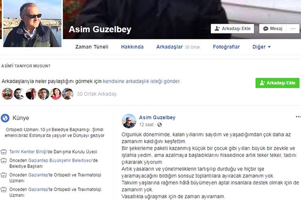 Gaziantep Büyükşehir Belediye Başkanı Asım Güzelbey, sosyal medya hesabında veda dolu mesajlara yer verdi. “Üst düzey bir makam için yapılan kavgaların çirkin sonuçlarına tanık olmaktan nefret ediyorum” şeklinde söylemlere yer veren Güzelbey, “Artık yasaların ve yönetmeliklerin tartışılıp durduğu ve hiçbir işe yaramayacağını bildiğim sonsuz toplantılara ayıracak zamanım yok” dedi.