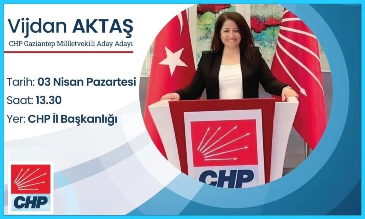 Ben Yüksek Mimar Vijdan Taşdemir Aktaş, Cumhuriyet Halk Partisi 28. Dönem Gaziantep milletvekili aday adayıyım.