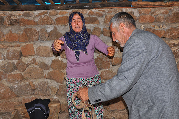Geçirdiği bir hastalıktan dolayı bir kolunun kesildiğini söyleyen Katrancı, “Bir rahatsızlıktan sonra kolumu kestiler şimdi bu hayvanlar gittikten sonra diğer kolumda gitti ciğerimde gitti. Görenler varsa 2 bin lira ödül ya da bir inek bağışlayacağım. Eşim Döne Katrancı sinir krizi geçiriyor'' ifadelerini kullandı.