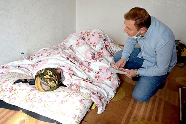 Gaziantep’in Araban ilçe Kaymakamı Abdulhamit Mutlu, yeni tip korona virüs salgını nedeniyle evlerinden çıkamayan 18 yaşlıyı evlerinde ziyaret ederek maaşını teslim etti.