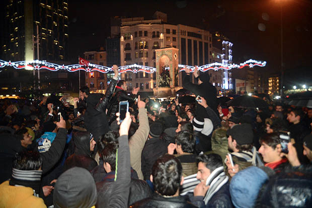 Taksim'de yeni yıla girmek isteyen vatandaşlar ve turistler yeni yıla dakikalar kala İstiklal Caddesi'ni ve Taksim Meydanı'nı doldurdu. Vatandaşlar ve turistler yeni yıla geri sayım yaparak ve hatıra fotoğrafı çekerek girdi.