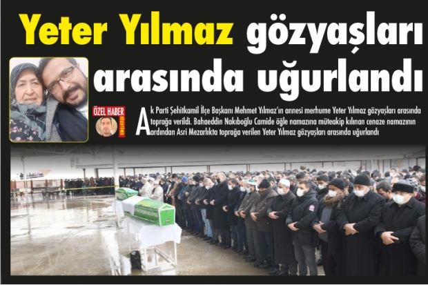 Bahaeddin Nakıboğlu Camide öğle namazına müteakip kılınan cenaze namazının ardından Asri Mezarlıkta toprağa verilen Yeter Yılmaz gözyaşları arasında uğurlandı.