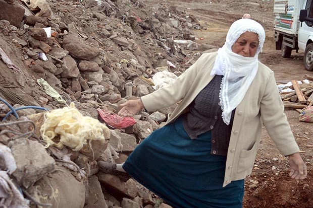 Diyarbakır'ın Sur İlçesi'nde PKK'ya yönelik düzenlenen operasyonlar sırasında tahrip olan ev ve işyerlerinin sahipleri geriye kalan enkazların hafriyatlarının döküldüğü bölgeye giderek, molozlar arasında geride kalan birkaç parça eşyaları ile anılarını arıyor. Sur'daki evi patlayıcı ile yıkılan Fatma Yıldırım, hafriyat alanına getirilen eşyalar arasında bazı yatak ve halılarını bulduğunu anlatırken, "Allah kimseye hakkımızı bırakmasın" dedi. Polis gözetiminde bulunan hafriyat alanında bazen el bombası ve patlayıcıların da bulunduğu ve bunların orada bulunan polislere teslim edildiği kaydedildi.