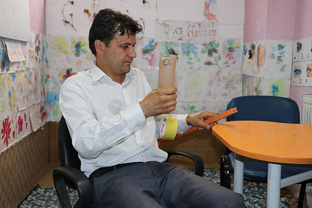 Rehabilitasyon Merkezi idareci ve öğretmenleri, yavru kuşun durumunu fark edince harekete geçti. Merkez öğretmenlerinden Mehmet Yalçın, kendi imkanlarıyla bir düzenek oluşturdu. Uzun demir çubuğun ucuna kağıt havlu rulosu rulosu bantlayan Yalçın, rulonun içerisine yerleştirdiği yavru kuşu, yuvası ile buluşturdu.